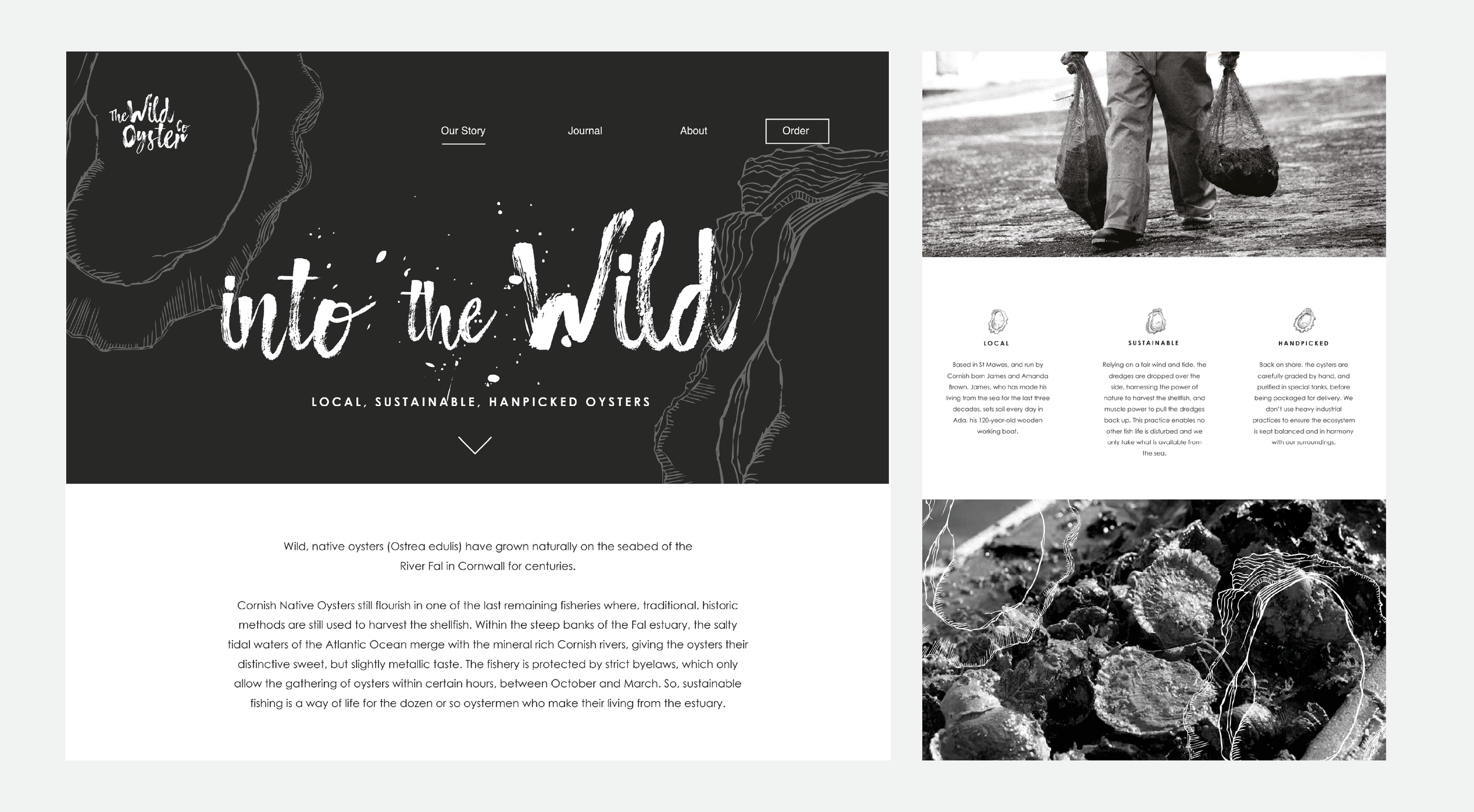 A full brand identity for a small, heritage-driven Cornish oyster company—one of the few remaining fisheries in the UK to hand-harvest wild oysters. The brand leans into the raw, untamed nature of its product, with ‘wild’ becoming a central theme across all marketing and visual storytelling.