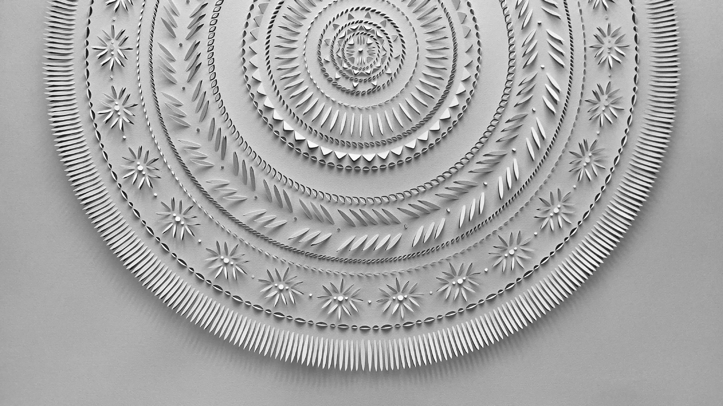 Inspired by intricate plasterwork patterns that form the inside of Nadj interiors throughout Saudi Arabia. Realised by two different papercut artists, Anna Maria Bellman and Tahiti Perhson, both using different methods to carve the paper creating layers of interest, intrigue and dimensionality.